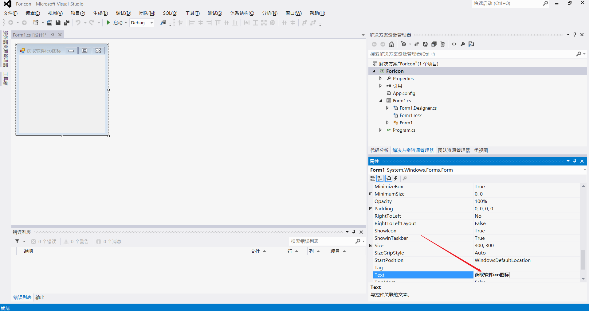 然后再右边的解决方案资源管理器里将 Form1.cs 重命名为ForIcon.cs