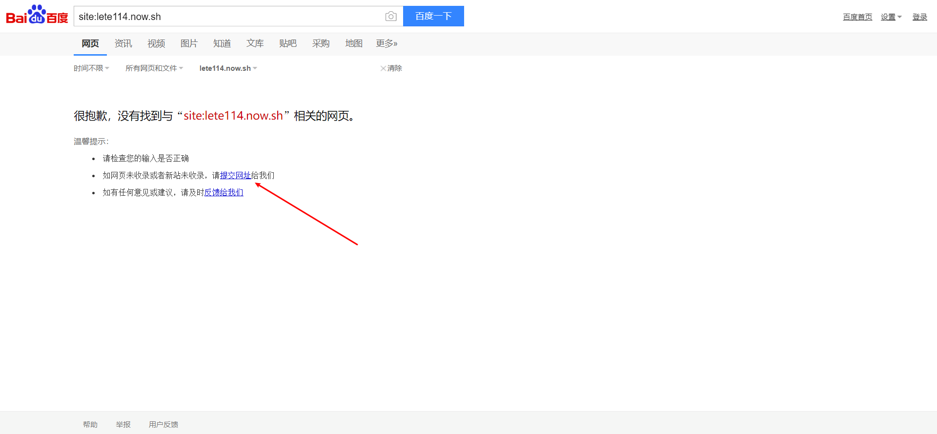 1. 百度搜索框内输入site:你的域名如:site:lete114.now.sh后点击提交链接或者直接https://zhanzhang.baidu.com