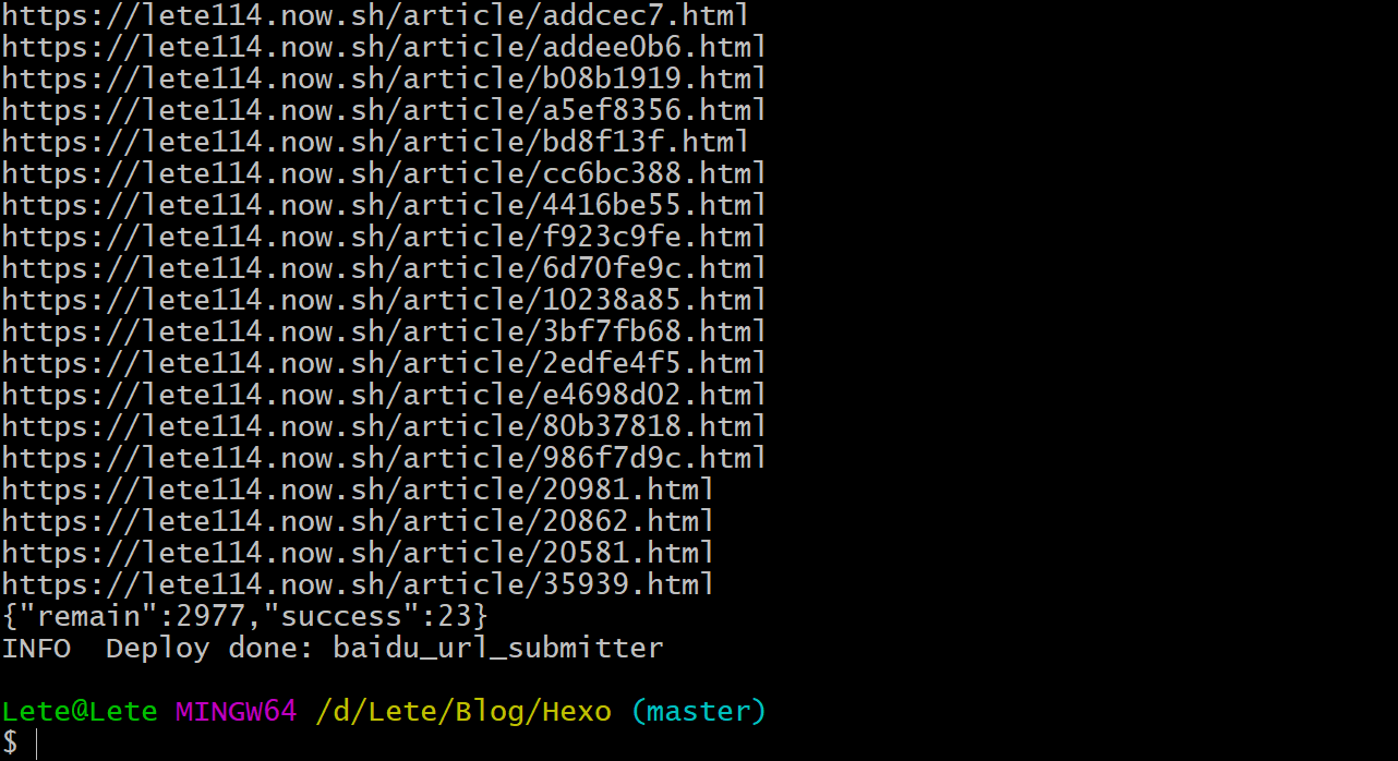 之后去百度站长平台提交一下 sitemap 的路径就好,如:lete114.now.sh/baidusitemap.xml,感觉这个没多大用,可能是我博客有问题吧。